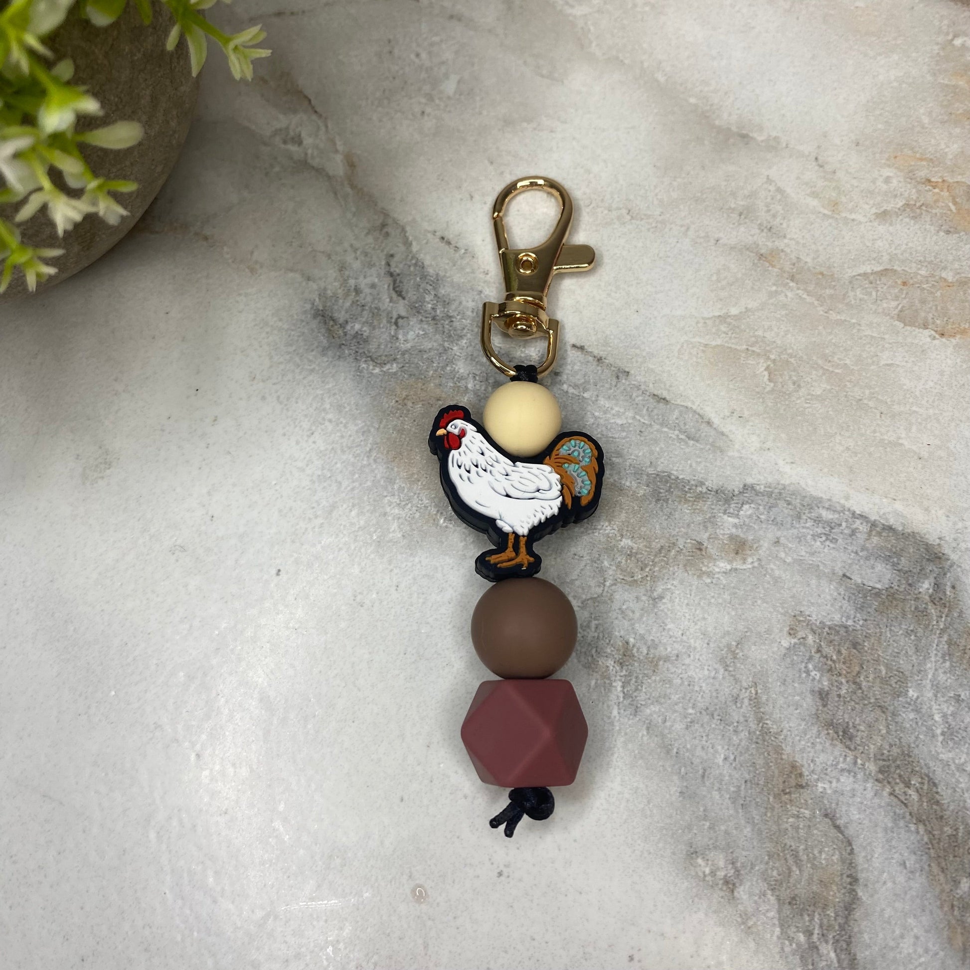 Keychain - Silicone Bead - Chicken - Maroon