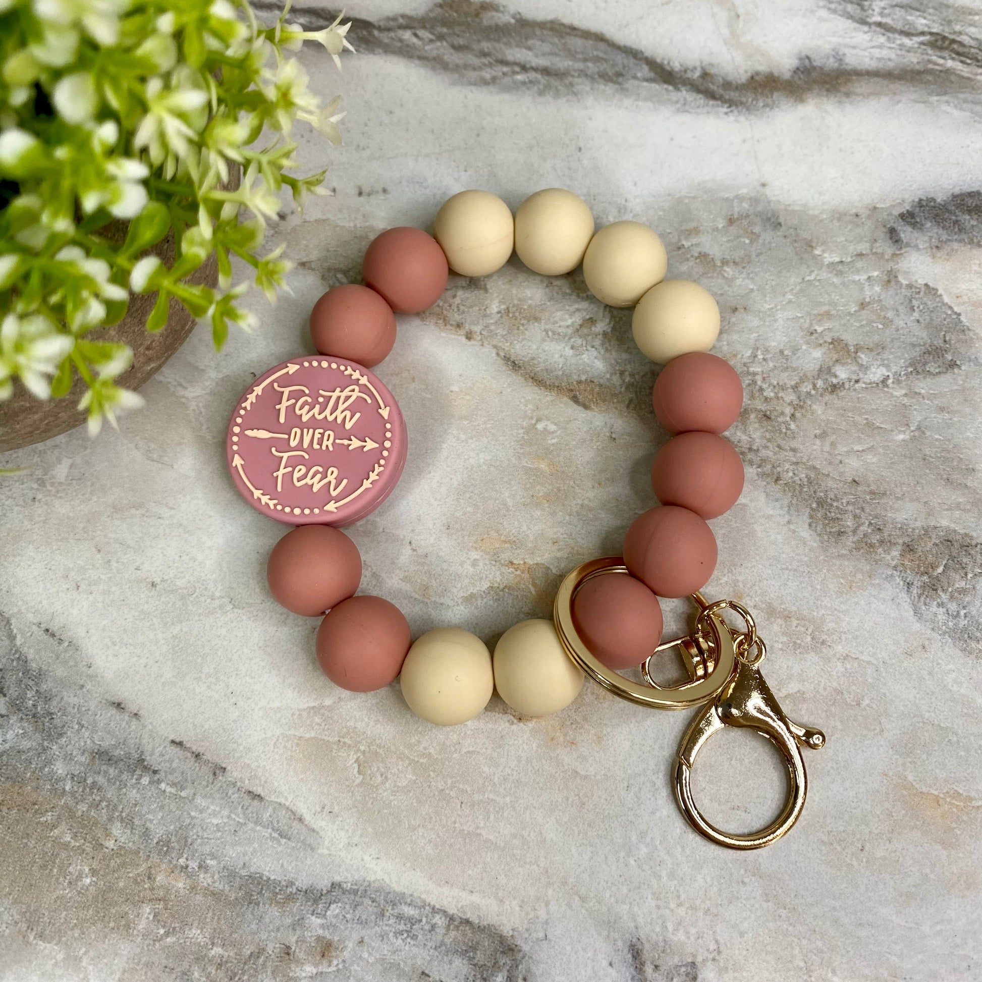 Silicone Bracelet Keychain - Religious, Faith Over Fear #1